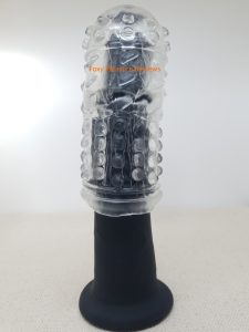 It has a slightly sticky texture. To be honest, it reminded me of the feel of the AceCream material on the Syncbot🦊 Scabbard. Other TPE masturbators, such as those from Kiiroo🦊, have a softer, more velvety feel. This sticky feel means that dust, hair and the like will stick to the sleeve.